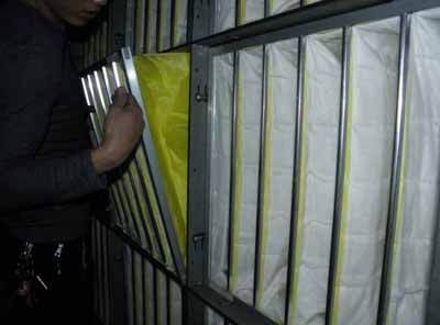 工人正在安裝更換新的F8級中效袋式過濾器